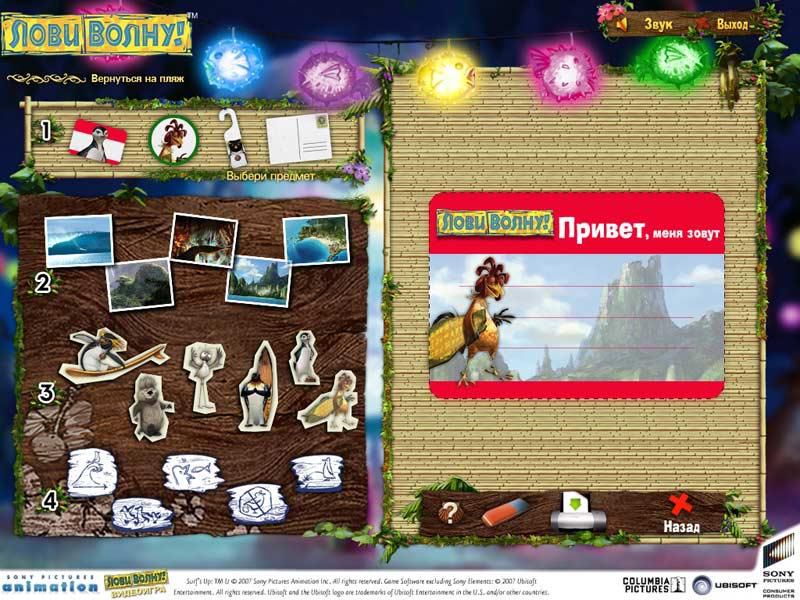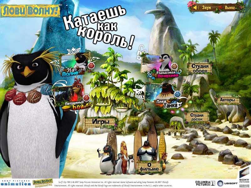 Этим ребятам ничего не стоит оседлать волну где угодно. Вот и на жарком острове Пин Гу у них вполне нескучная тусовка. Лето, море, пальмы, зажигательная музыка – все для твоего удовольствия! А с такими приятелями, как наши пингвины, ты уж точно не устанешь отдыхать. Особенно если ты не прочь прокатиться на доске и пошвыряться ананасами. А также подбить из ружья парочку Цыпленков Цып и облапошить Танка Эванса. Тебе уже захотелось присоединиться? Тогда вперед! Оттянись под плеск волн и шелест пальм.