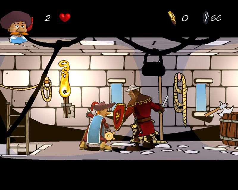 В динамичной аркаде "Три мушкетера" тоже скучать не придется. Жизнерадостный Портос должен освободить своих друзей - Атоса, Арамиса и Д'Артаньяна, которых пленил коварный граф Ксавье. Портос бегает и прыгает по уровням, уворачивается от ловушек, сражается с врагами, попутно решая головоломки и собирая бонусы. А главное - Портоса озвучивает сам Портос (Валентин Смирнитский)!