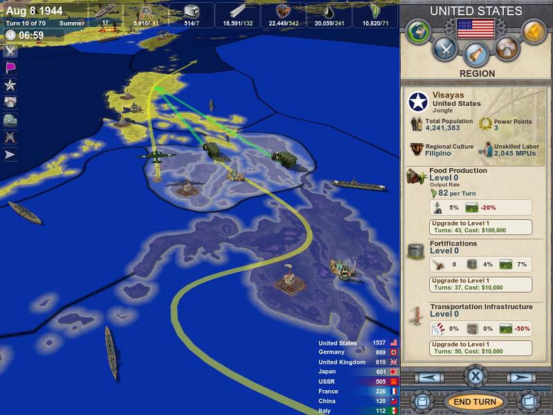 Возможность воевать на стороне 8 стран, в числе которых Китай, Япония, СССР, США и Германия