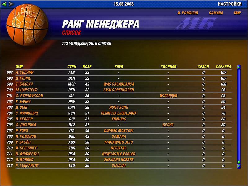 Без него ни одна баскетбольная команда никогда не добьется успеха. Только его профессионализм может сделать из никому неизвестной горстки любителей команду мирового уровня. Кто он? Гениальный баскетболист? Нет, он – менеджер команды. «Мировой баскетбол» дает игроку возможность почувствовать, что значит быть серым кардиналом спортивной команды – ее менеджером. В игре представлено более чем 600 команд, и одна из них поступает в полное распоряжение игрока. Можно контролировать расписание тренировок, ставить на трансфер и покупать спортсменов и даже влиять на стиль игры и настроение подопечных в каждом конкретном матче.