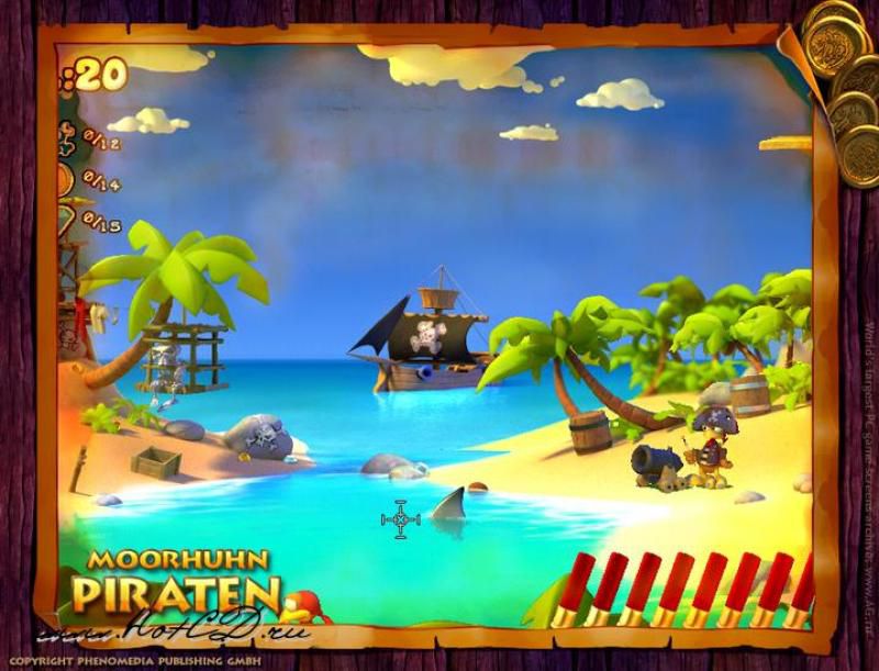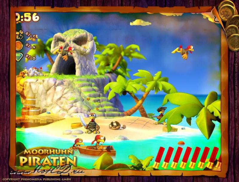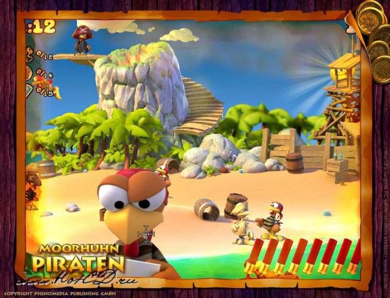 Несметные полчища морхухнов прочно обосновались на Карибском архипелаге, подгребли под себя сундуки с золотыми дублонами и бочки с ромом, машут острыми саблями и нецензурно бранятся! Твоя миссия проста как два пиастра - угомонить разбушевавшихся птиц посредством огнестрельного оружия. Проще говоря, заряжай и пли!
