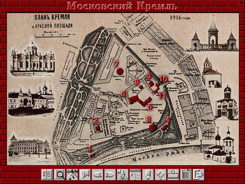 Вы узнаете об истории строительства знаменитого архитектурного ансамбля, познакомитесь с жизнью людей, оставивших свой след в русской истории и культуре, осмотрите крепостные стены и башни, памятники русской архитектуры, православные святыни, посетите апартаменты бывших и современных правителей России. С помощью путеводителя вы отправитесь в прошлое, увидите уникальную круговую съемку центра Москвы, архивные видеоматериалы: "Похороны Ленина", "Смена почетного караула у Мавзолея", услышите бой кремлевских курантов, побываете на службе в Успенском соборе, зайдете внутрь Резиденции Президента России, Грановитой палаты, Мавзолея Ленина.