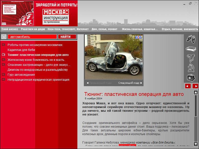 «Москва: Инструкция по применению» – одна из самых популярных программ телеканала ТНТ, своего рода энциклопедия жизни в современной Москве, остроумный телесправочник информационно-игровых советов о том, как «пользоваться» столицей.