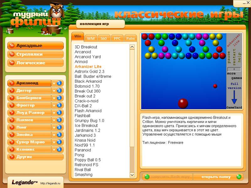 Радуйся, любитель настоящей игровой классики! Если тебя мучает ностальгия по таким играм, как «Арканоид», «Пакмен», «Диггер», «Фроггер», «Тетрис» и прочим другим, то этот сборник сможет тебе помочь! Он включает в себя ни много ни мало 800 компьютерных игр для PC, Pocket PC, Symbian S60, WM Smartphone и Palm OS, и практически все программы на этом диске – компьютерная классика. Каждая игра сопровождается скриншотом и описанием. Помимо этого, в сборник включена подборка статей по истории компьютерных игр – теперь ты сможешь узнать, кто и когда сделал твою любимую игру.