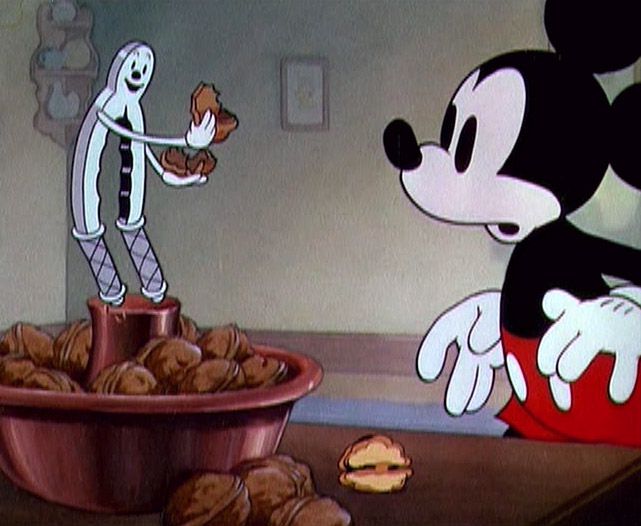 Микки, словно Алиса, оказался в Зазеркалье. Здесь оживает мебель, а съев грецкий орех, можно уменьшиться. Микки танцует с колодой карт и знакомится самой Червонной королевой.