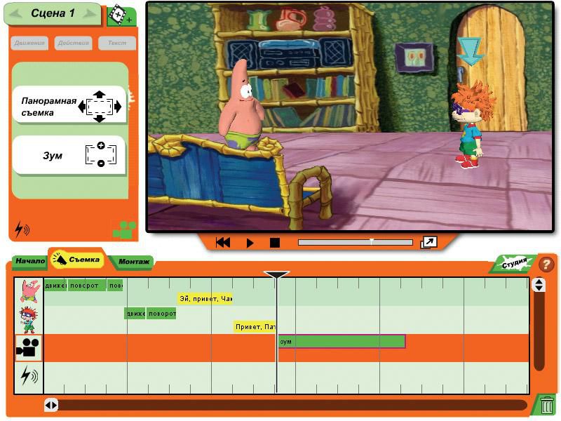 Теперь у мальчишек и девчонок появится возможность самим создавать трехмерные мультики с суперпопулярными персонажами мультфильмов «Губка Боб Квадратные Штаны», «Приключения Джимми Нейтрона, мальчика-гения» и «Ох, уж эти детки!». У каждого из знаменитых героев свой неповторимый характер и уникальный набор озорных реплик, также в распоряжении юного мультипликатора множество оригинальных фонов и предметов реквизита.