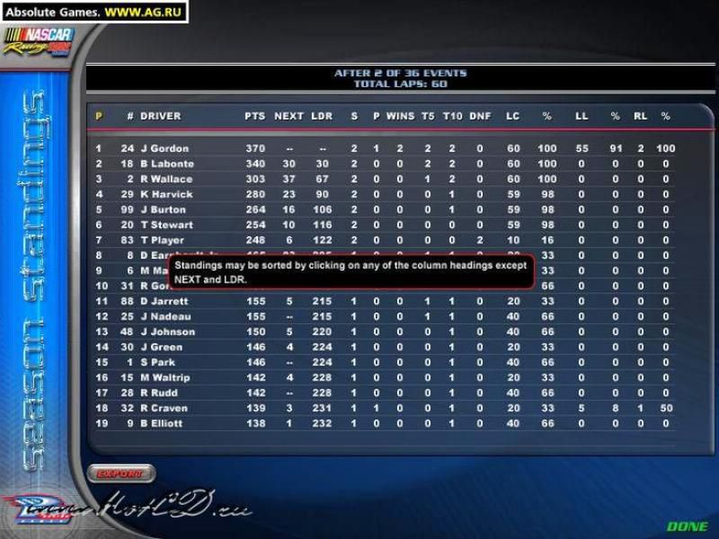- Возможность вступить в соревнование с лучшими гонщиками Nascar - такими, как Джефф Гордон, Дейл Джерретт и другими.
