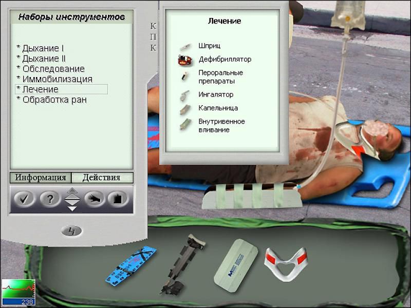 Игрок столкнется с 35 несчастными случаями (ножевые ранения, тяжкие телесные повреждения и т. д.), в его распоряжении будут более 40 реально существующих врачебных инструментов. Разобраться во всем этом поможет подробный медицинский справочник, описывающий все болезни, методы их лечения и используемые инструменты.