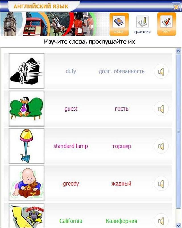 Программа предназначается для изучения английской лексики, ее словарный состав максимально приближен к школьной программе и распределен по классам. Вы сами сможете устанавливать необходимый объем задания на день и уровень его сложности. А выйти из программы можно будет только с помощью пароля, который также задаете вы. При желании стимулирующий режим можно отключить и работать как обычно.