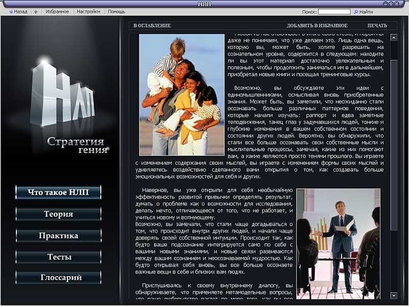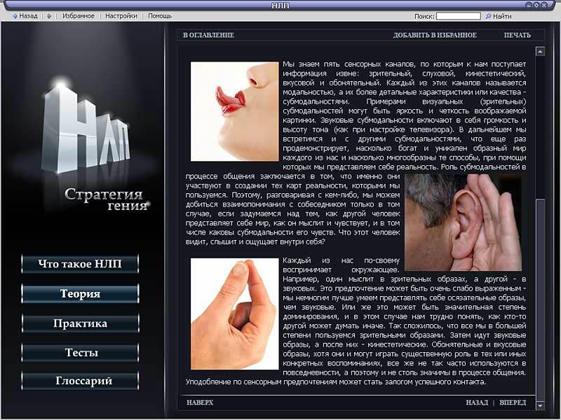 «Если что-то умеет делать хотя бы один человек в мире, этому можно научить всех!» – гласит девиз приверженцев нейролингвистического программирования (НЛП), молодого, но стремительно развивающегося направления практической психологии. В течение нескольких десятилетий специалисты по НЛП, используя достижения мировой психологии, разрабатывали систему моделей, навыков и техник, призванных научить людей мыслить и действовать результативно и добиваться успеха в любой сфере.