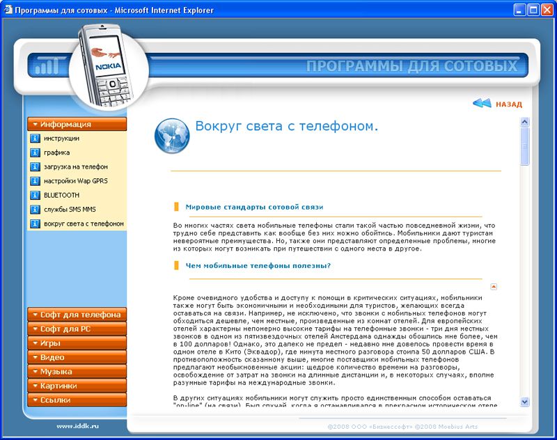 На диске представлено свободно распространяемое программное обеспечение и образцы широко известных рекламных материалов для обучения пользователя созданию и размещению обоев, игр для сотовых телефонов Nokia.