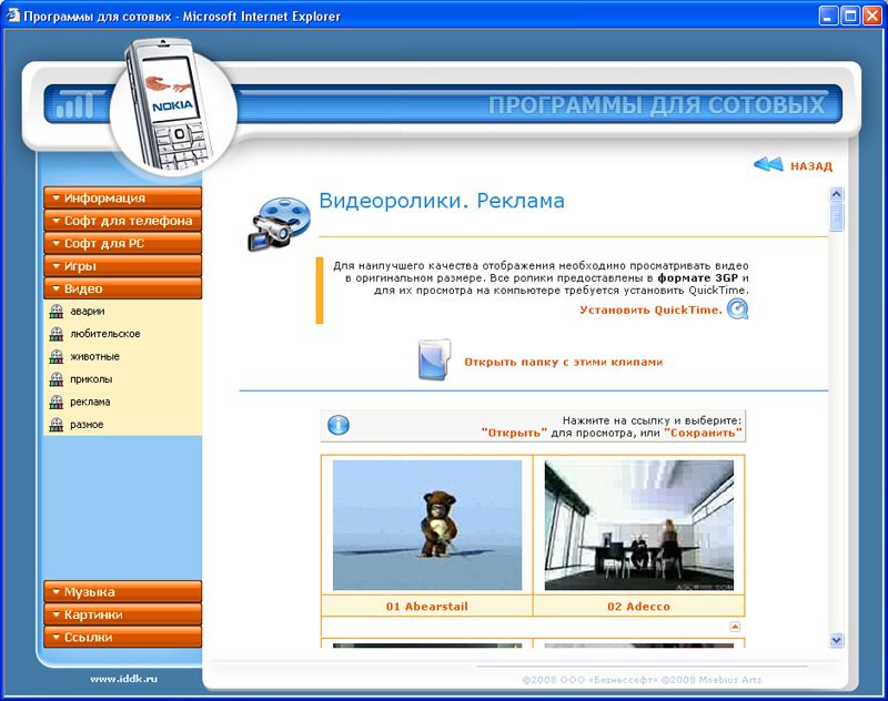 - 309 видеоклипов - видео для мобильных телефонов в формате 3GP