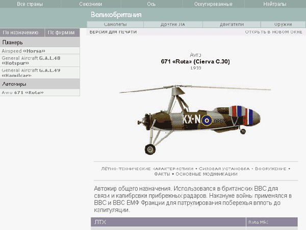 Не стоит пренебрегать данными о планерах, автожирах и авиасвязках, которые представлены в рубрике «Другие ЛА». Здесь находятся не только произведённые во время войны, но и довоенные модели.