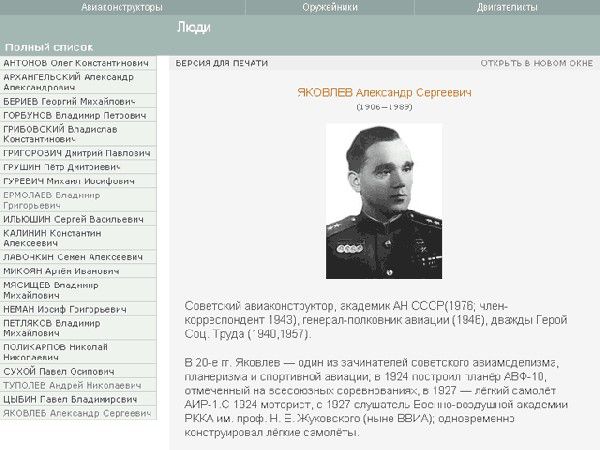 Однако знакомство с миром военной авиации было бы неполным, если бы в электронном справочнике отсутствовала информация о людях, благодаря которым этот мир появился. Это известные авиаконструкторы, оружейники и создатели двигателей, чьи имена вписаны в историю.