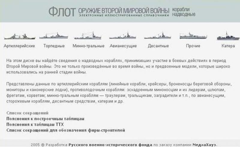Основные особенности электронной энциклопедии "Оружие Второй Мировой войны: Надводные корабли":