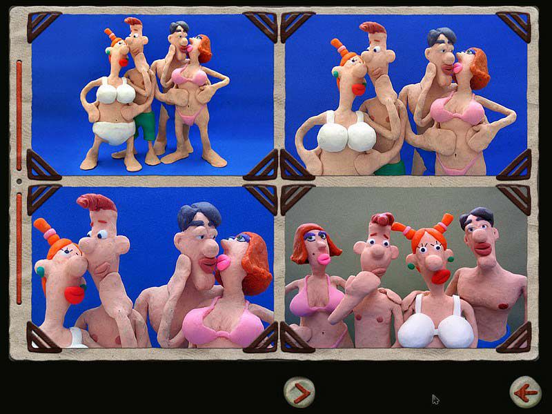 К тому же у Педро дома есть на что посмотреть в отсутствии хозяина. Например, полистать откровенный фотоальбом (и узнать о своем приятеле и его аппетитной пластилиновой подружке много нового). А еще посмотреть видео ХХХ, послушать пикантные истории на магнитофоне и, конечно же, изучить богато иллюстрированную Камасутру из натурального пластилина!