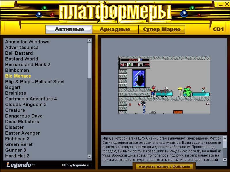 Подборка включает как классические игры, первоначально созданные для игровых приставок и автоматов, так и их многочисленные клоны, в том числе трехмерные. Кроме того, здесь вы найдете совсем новые игрушки, созданные в жанре платформера. Отдельный раздел сборника посвящен одной из наиболее популярных игр 1980-х – «Лоуд Раннер» (Lode Runner), которая примечательна тем, что именно в ней впервые появился встроенный редактор уровней. И разумеется, главный платформер всех времен и народов – очаровательный «Супер-Марио»!