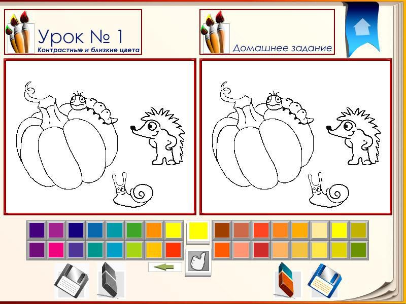 Игра организована в 9 тематических уроках. В каждом уроке ребенку предоставляется информация в виде анимационного ролика, а также задание для бумажного альбома, затем малышу предлагается сделать иллюстрацию к этому уроку.