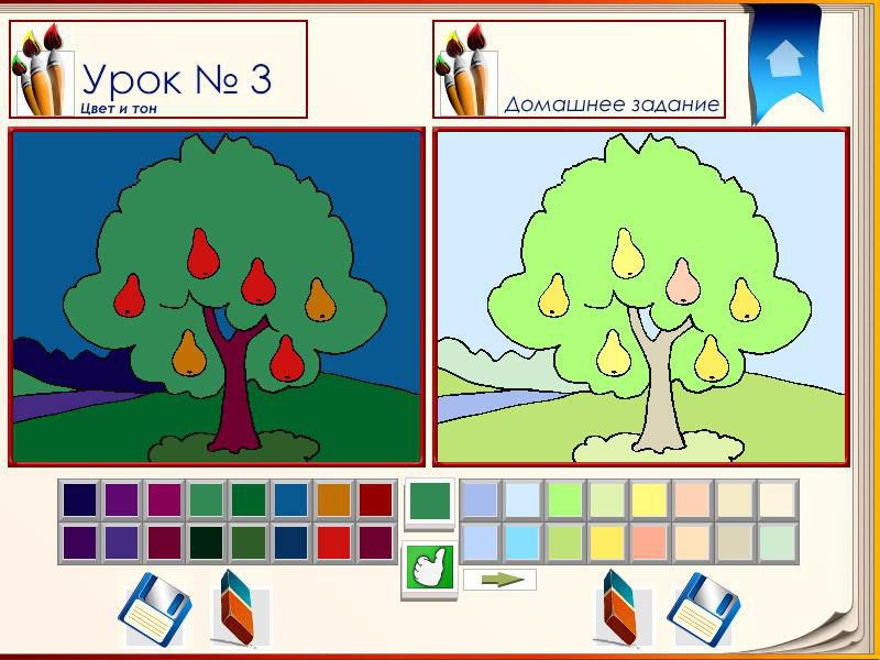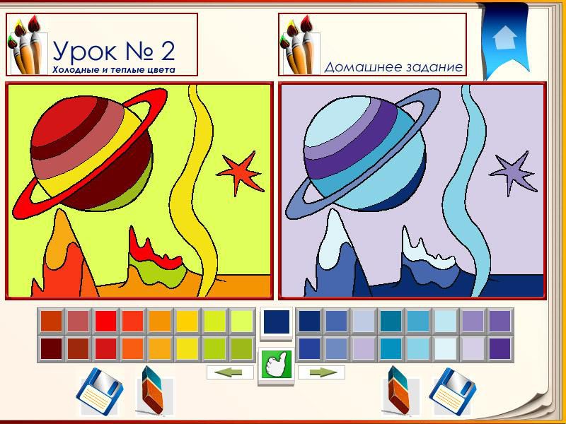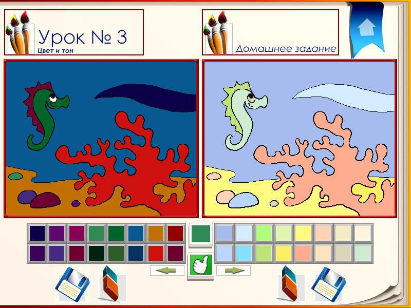 В игре малыш познакомится с контрастными и близкими цветами; теплыми и холодными цветами; разными тонами цвета; формами, строгими и не очень; узорами; симметрией.