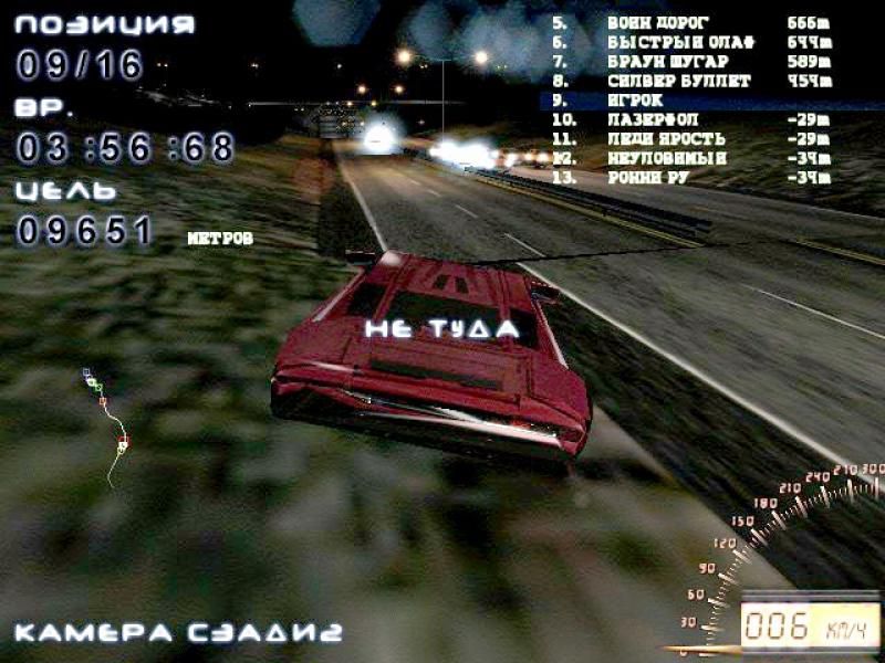 Если вас привлекают ночные гоночные аркады, предлагающие принять участие в нелегальных турнирах, чтобы промчаться на бешеных скоростях по безлюдным городским или пригородным шоссе под аккомпанемент рок-групп, не опасаясь наличия на дорогах полиции и радуясь отсутствию дорожных пробок, то наш сегодняшний гость - как раз из таких. В "Полуночной грани скорости" (оригинальное название - Midnight Racing: Long Night) вообще нет копов, а соревноваться приходится только с не в меру ретивыми соперниками (хоть компьютерными, хоть настоящими, поддерживается мультиплейер по сети), до 16-ти машин в одной гонке, при одиночной игре.