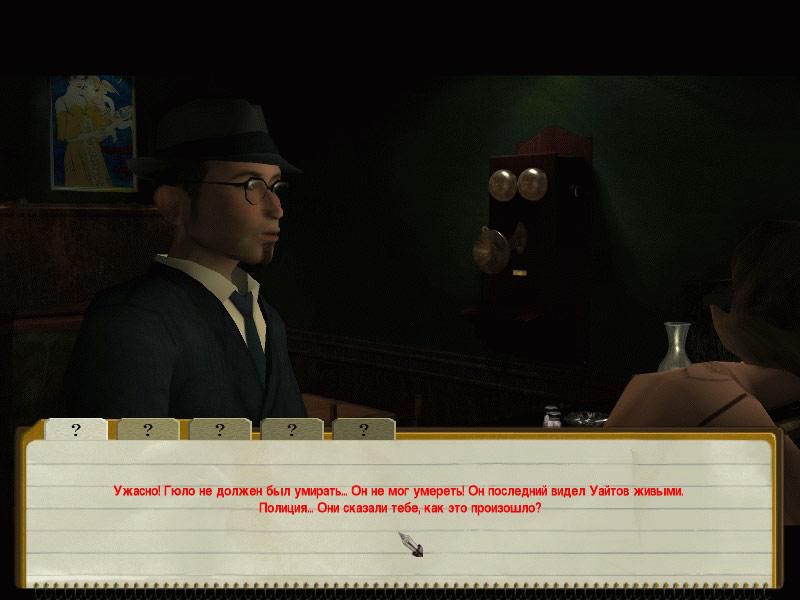 - Запутанный детективный сюжет: игрок буквально погружается в круговерть жестоких убийств, лжи и обмана, и только самый тщательный анализ происходящего может помочь ему остаться в живых.