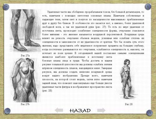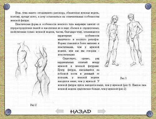 Практический курс, созданный при участии члена Московского Союза художников Игоря Замедянского и студии Scolopendra, представляет собой подробное руководство по изобразительному искусству. Он содержит серию исчерпывающих уроков по технике рисунка и научит вас строить женскую фигуру с помощью планов. Ознакомившись с содержимым компакт-диска, вы узнаете, что такое линии контрастов, в чем разница между художественной и фотографической перспективой, почему конструкцию фигуры сравнивают с детской пирамидкой, и каковы основные отличия женской фигуры от мужской.