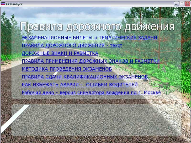 Этот диск станет незаменимым помощником для тех, кто решил получить водительские права. «Правила дорожного движения 2007» – современное и эффективное средство для полноценной подготовки к сдаче экзаменов на знание ПДД. Все материалы и экзаменационные билеты представлены с учетом последних изменений и дополнений на апрель 2006 года. Пользователь может работать в одном из двух режимов: проверка знаний и экзамен по билетам. Экзаменационные билеты утверждены главным инспектором ГИБДД МВД России.