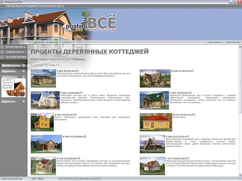 Третий выпуск серии «Проекты коттеджей Postroi.ru» содержит более 550 готовых проектов коттеджей, выполненных профессиональными российскими архитекторами, 150 из которых ранее нигде не были опубликованы! Деревянные, кирпичные, пенобетонные – все представленные на диске дома спроектированы с учетом российских строительных норм и правил. Большой выбор и доступная подача информации помогут вам быстро сориентироваться в тенденциях современного загородного строительства и выработать индивидуальные предпочтения.