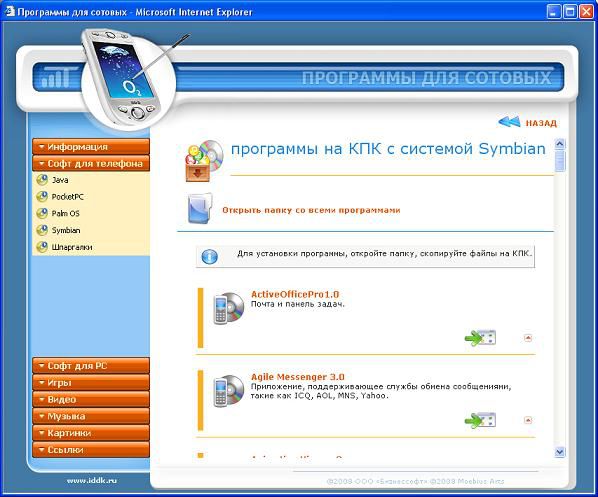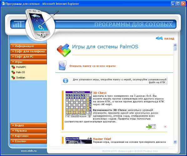 На диске представлено свободно распространяемое программное обеспечение и образцы широко известных рекламных материалов для обучения пользователя созданию и размещению обоев игр для смартфонов и КПК.