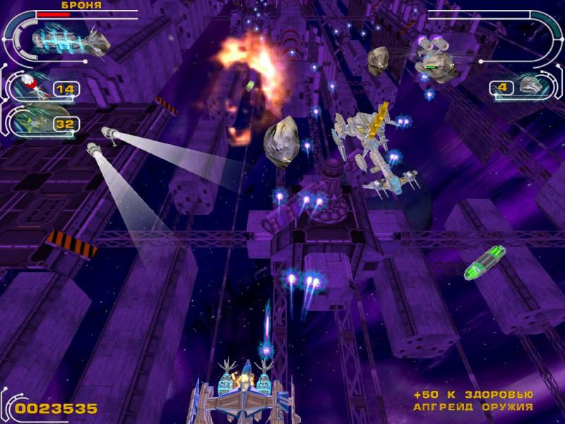 В начале игры в вашем распоряжении будет весьма маневренный, но довольно слабо оснащенный истребитель. Подбирайте среди обломков вражеских машин более мощное оружие и броню, чтобы постепенно превратить свой корабль в настоящий космический рейдер.