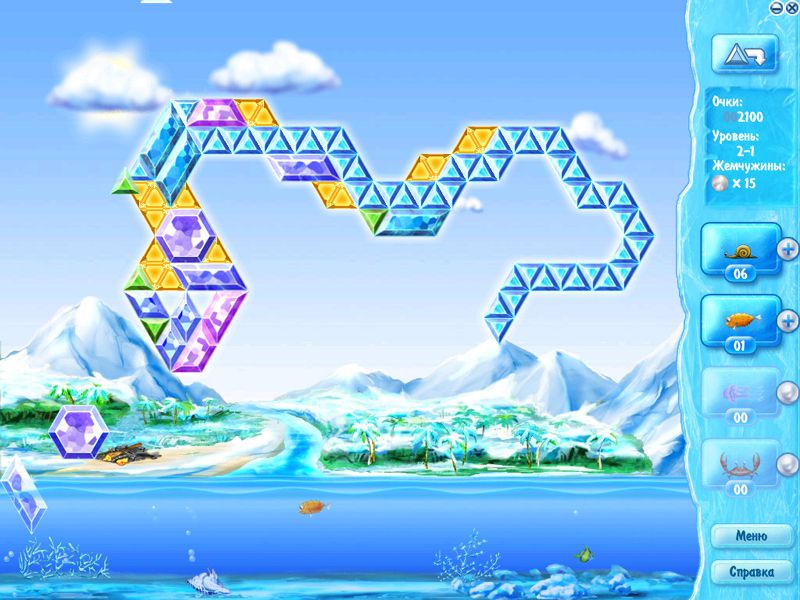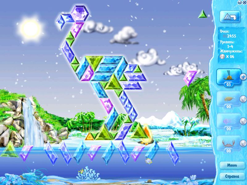 Не все ледышки можно сразу же разместить на мозаике, и часть из них придется сбрасывать в море. При этом будьте предельно внимательны: если в воде окажется слишком много льда, проигрыша не избежать. К счастью, неподалеку горит костер, который с легкостью расплавит мешающие фишки.