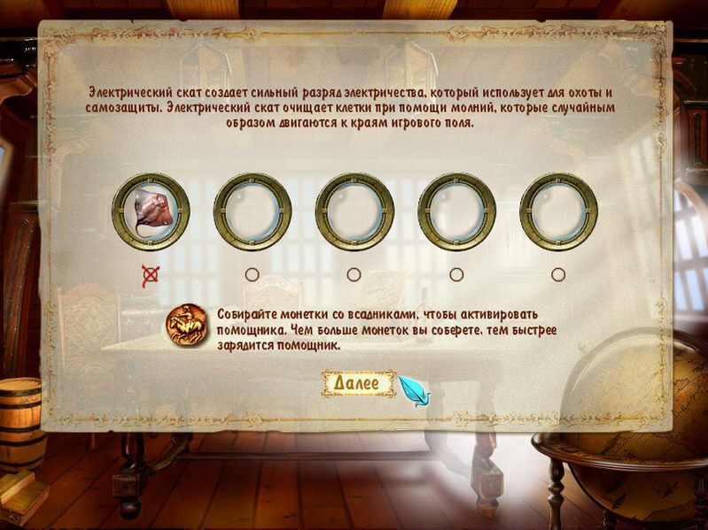 Собираем пиратские клады, которые скрыты в прибрежных водах тропических островов. Добраться до сокровищ нелегко: чтобы заполучить все сундуки с золотом и драгоценными каменьями, прежде необходимо решить множество увлекательных логических головоломок, создавая на игровом поле непрерывные линии из одинаковых фишек. Справиться со всеми трудностями и обрести богатство вам помогут бонусы и магия обитателей морских глубин.