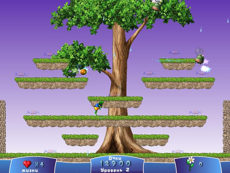 Помогите Фрогги дать отпор инопланетным созданиям. Храбрый лягушонок может бороться с врагами, заключая их в пузыри, которые можно легко уничтожать вместе с содержимым. Но не забывайте при этом об осторожности, ведь противники коварны и опасны!