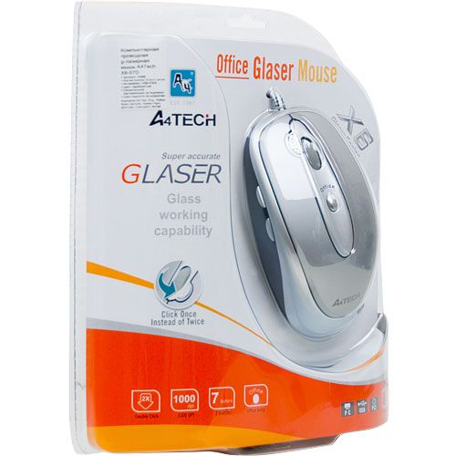* Мышь A4Tech с технологией G-Laser может работать даже на прозрачном стекле. Для этого на поверхности необходимо оставить несколько отпечатков пальцев.