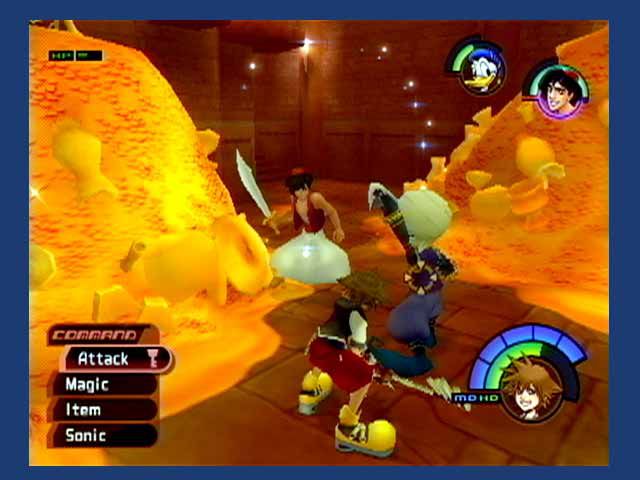 Первый совместный проект двух студий — Squaresoft и Disney Interactive, «на ура» воспринятый миллионами игроков по всему миру. Более ста диснеевских персонажей из лучших мультфильмов знаменитой компаниии, три десятка действующих лиц серии Final Fantasy и, разумеется, новые герои участвуют в грандиозной ролевой эпопее о спасении миров от таинственного «Бессердечного» зла. Феерическая графика игры сочетает неподражаемый стиль Squaresoft с яркими красками Диснея, стремительные бои — с захватывающими приключениями, а живое, «детское» восприятие мира — с серьезностью идей.