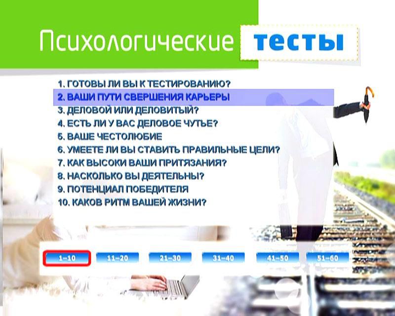 В подготовке коллекции принимал участие Сергей Сергеевич Степанов – психолог, автор 20 научно-популярных книг по психологии и свыше тысячи статей в газетах и журналах. Его книги разошлись общим тиражом свыше полумиллиона экземпляров. Теперь у вас есть уникальная возможность пройти тестирование прямо на экране телевизора, используя для этого только пульт дистанционного управления.