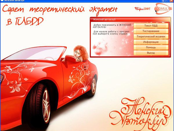 Какая же бизнес леди без шикарного авто? Этот диск – ваш учитель и советник, рекомендованный журналом «Женщина за рулём»! Сдача экзамена и оформление машины в ГИБДД - хлопотное, и требующее нервных и физических затрат, занятие. Программа поможет вам сориентировать во множестве проблем возникающих на вашем пути.