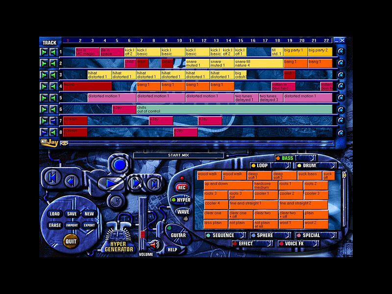 В твоем распоряжении огромное количество рейв-семплов и отличные инструменты, с помощью которых в считаные минуты можно создать полноценные треки. Ты сможешь по своему вкусу комбинировать ударники, басовые, клавишные и голосовые семплы, причем все операции производятся обычным перетаскиванием объектов.