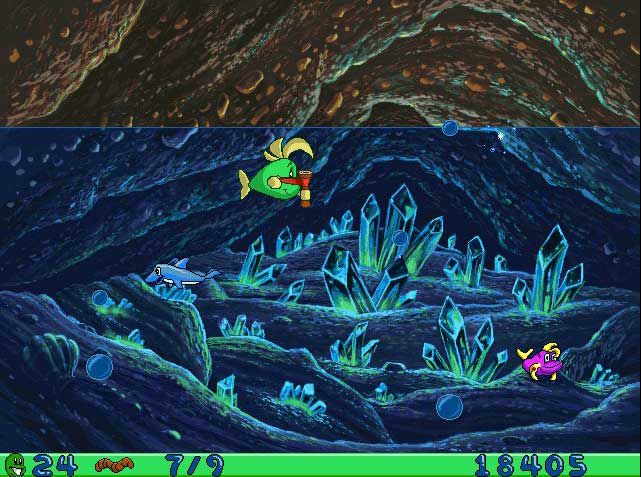 Сколько раз наши герои приходили на выручку водным обитателям! Теперь в опасности оказались сами детективы, и некому их спасти. Сильный водоворот затянул Рыбку Фредди и Лютера на самое дно затерянной пещеры. На поверхность поднимаются огромные пузыри воздуха и чем их больше, тем меньше воды остаётся в пещере.