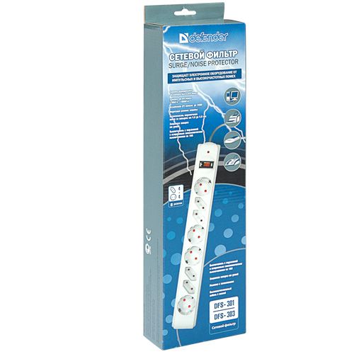 Сетевые фильтры Defender DFS 300 серии защищают электронную технику от перегрузок по току, короткого замыкания, ВЧ и импульсных помех. Корпус сетевого фильтра сделан из прочного негорючего пластика ABS, розетки снабжены защитными шторками. Сочетание двух различных типов розеток позволяет подключать к фильтру до 8 устройств.