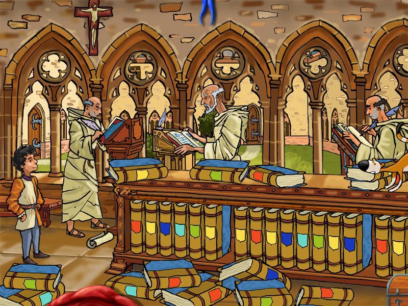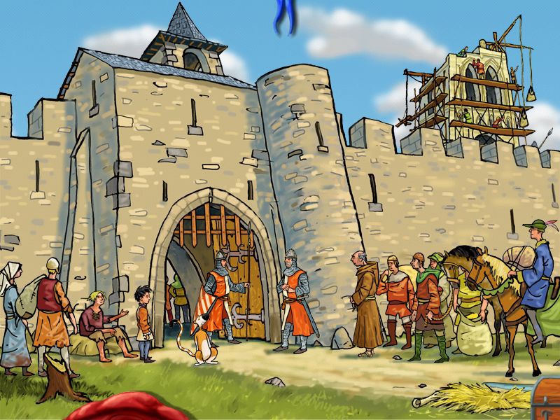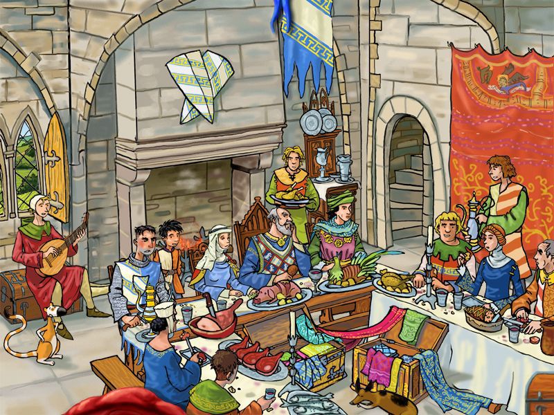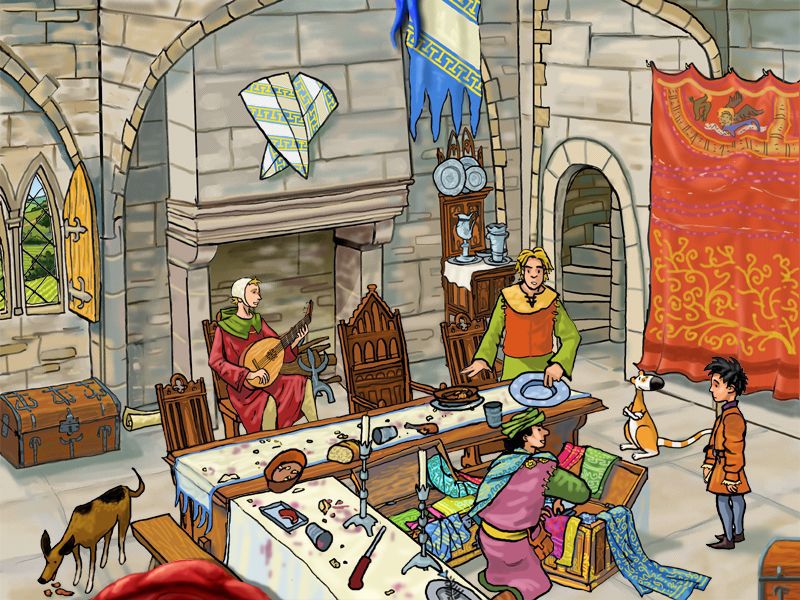 - 14 рисованных пейзажей и интерьеров: замок, собор, ярмарка, аббатство.