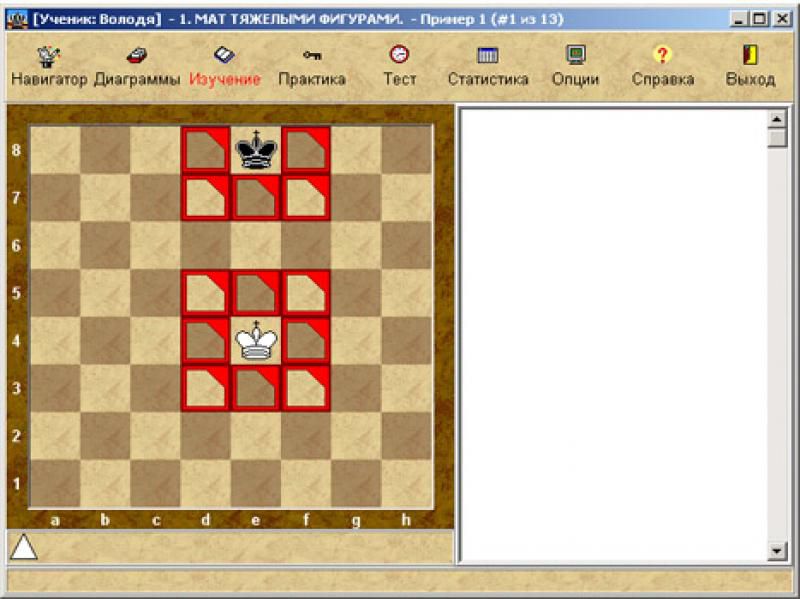 - Реализация большого материального перевеса. В случае если вы будете играть не лучшим образом, программа придет на помощь и продемонстрирует кратчайший путь реализации преимущества.