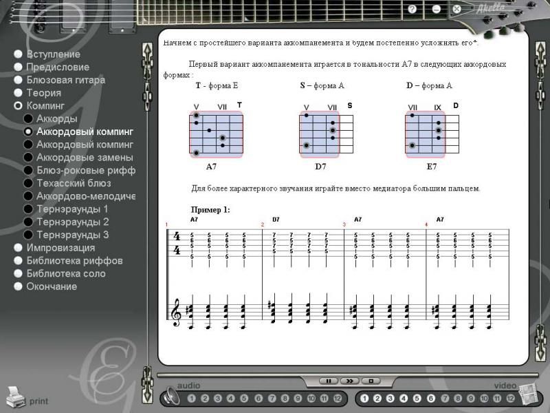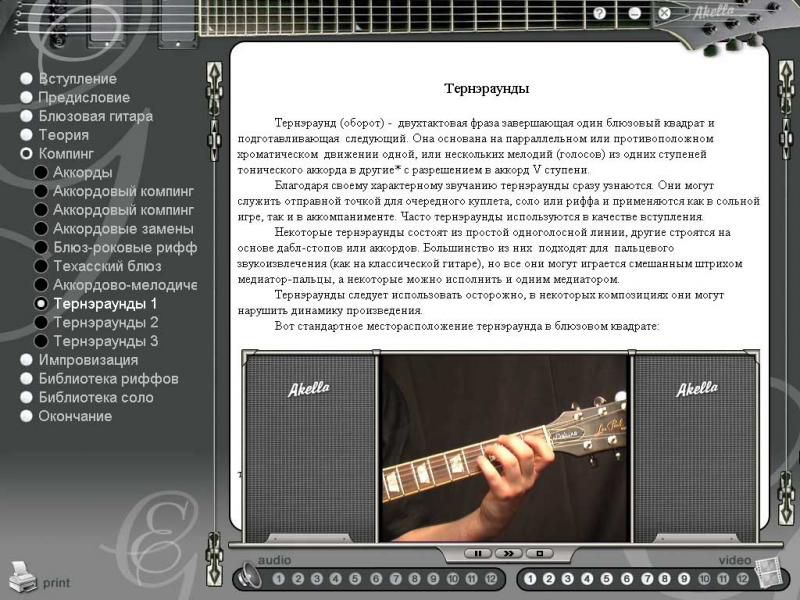 Особенности:- Обучение основано на композициях известных блюз-гитаристов