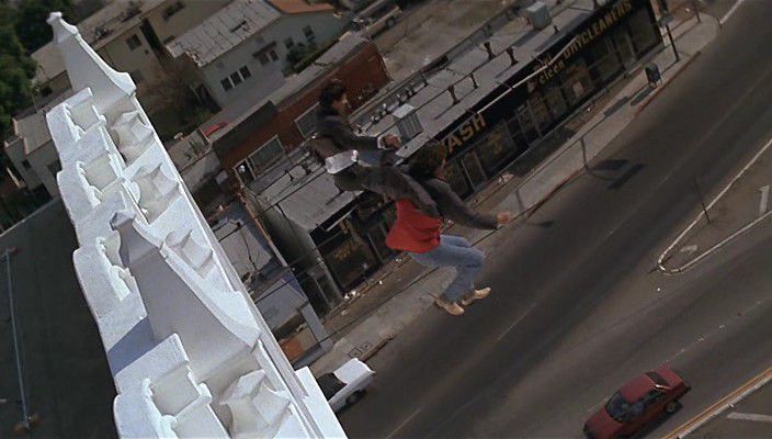 Обаяние этого вечного приключенческого сюжета о паре полицейских - в великолепной игре Гибсона и Гловера. Первый - слегка чокнутый смельчак Риггз, которому из-за его легендарного вьетнамского прошлого и не менее легендарного настоящего дали уважительную кличку "смертельное оружие". Его чернокожий напарник Мертаф - человек куда более земной, обремененный семьей и предрассудками. Характеры героев высекают неподдельный комизм и драматическое напряжение, когда те попадают в бесконечную цепь опаснейших передряг. Оскарная номинация за звук.