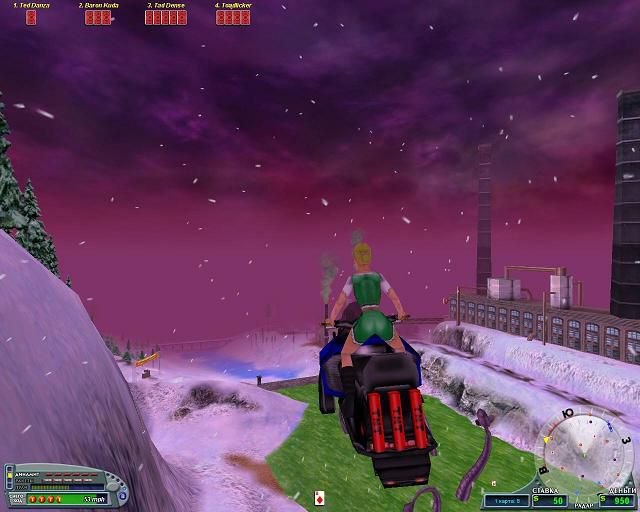 Делайте ставки, блефуйте или просто уничтожайте оппонентов - покер еще никогда не был таким агрессивным! Приготовьтесь к сумасшедшим гонками на снегоходах, оснащенных ракетницами и пулеметами! Ваша задача - любой ценой добраться до финишной черты, отстреливаясь от соперников и собирая хорошие карты. Победа достанется тому, кто придет к финишу с лучшей комбинацией на руках. Главное - прорваться к финишу, не попав под пули соперников!
