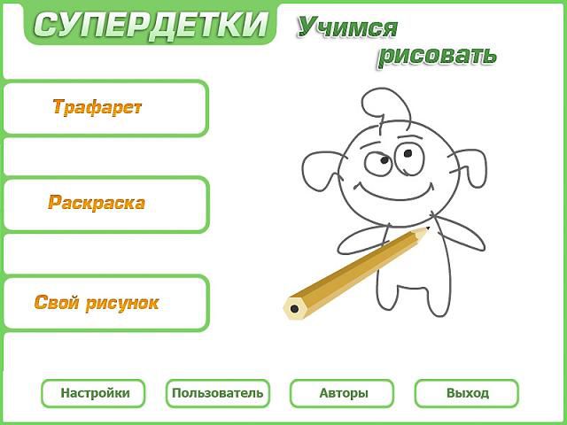 Все для вашего ребенка с программой Супердетки. Учимся рисовать. В вашей семьеня растет юное дарование, а вы не знаете, как развить его художественные таланты? Эта игра поможет вашему ребенкуня в освоении художественного мастерства, в познании волшебного мира формы и цвета. Диск содержитня несколько мини-игр, в одной из которых ребенок, повторяя действия веселого анимированногоня персонажа, научится рисовать сложные, многоплановые картинки. В другой узнаетня, как смешивать различные краски и какие цвета при этом получаются. В мини-игре «Свой рисунок» ваш малышня сможет создать собственный шедевр, используя набор инструментовняя настоящего художника. Убедитесь сами, рисование может быть одновременно и веселой игрой, и прекрасным способом развития творческих способностей! Программаня рекомендована для детей от 3 до 5 лет.Особенности продукта:Яркие шаблоны: герои, предметы и элементы для рисования