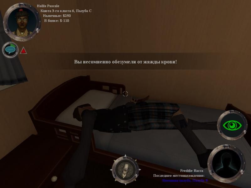 Загадочный мистер Икс приглашает вас в круиз на роскошном океанском лайнере. Вот только в уплату за путешествие скучающий эксцентричный хозяин ожидает, что вы его позабавите, совершив убийство другого пассажира нестандартным и оригинальным способом. Например, почему бы не закрыть жертву в гигантском холодильнике? А может, забить беднягу до смерти сковородой? Очень креативно! Впрочем, пока ваша фантазия разыгралась еще не полностью, строго-настрого запомните следующее: во-первых, служба охраны корабля не дремлет - если вас поймают с поличным, прямая вам дорога под арест; во-вторых, не забывайте о питании, здоровом сне, гигиене и развлечениях для вашего героя. А в-третьих, и это самое главное, учтите: на корабле ни к кому нельзя поворачиваться спиной - прочие счастливчики пассажиры не прочь поохотиться на вас!