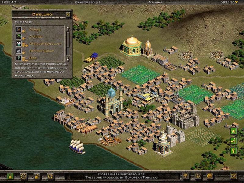 "Торговые империи" - это экономическая стратегия, посвященная тому, как стать богатым. С помощью торговли, разумеется. Выберите миссию на свой вкус (в вашем распоряжении древний Египет, средневековая Европа, Англия XIX века и множество других эпизодов) - и начинайте свой бизнес. Ваша задача - сориентироваться на рынке спроса и предложения и обеспечить своих торговцев надежным и быстроходным транспортом. Не забывайте также следить за последними достижениями науки и техники: игра охватывает тысячи лет, и прогресс не будет стоять на месте: Каждый эпизод игры охватывает какую-либо местность в определенный исторический период, например торговлю по Великому Шелковому пути между Римом и династией Хань. В каждом эпизоде имеется свой набор товаров и технологий: от шелка и бронзы в Древнем Китае до рома и паровых машин времен промышленной революции.