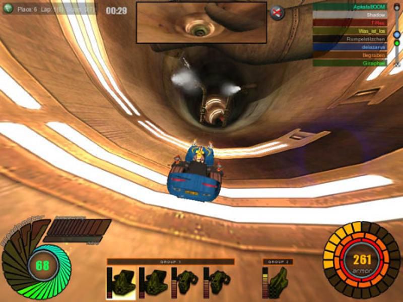 Модернизация «железного коня» происходит в «Гараже». В нем представлены на выбор машины и прочие атрибуты для настоящих гонщиков. У игрока есть возможность менять и улучшать движки, пилоны, колеса, бортовые компьютеры и, конечно, оружие. Особое внимание уделено боевой амуниции, так как задачи в игре разные: прийти к финишу первым, развив максимальную скорость, собрать специальные бонусы или уничтожить оппонентов на трассе. Все эти варианты прохождения обязательно приведут к победе.