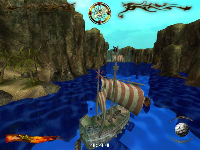 Вражеские "корыта" можно не только уничтожать, паля по ним из пушек, но и таранить. При этом следует учитывать, в какую часть корабля приходится удар. К сожалению, повреждения внешне никак не демонстрируются, паруса не рвутся, корпус не ломается и не горит, и узнать о них можно только по уменьшающейся полоске здоровья. А потом кораблик просто тонет, сразу и целиком, оставляя после себя на поверхности вкусные бонусы. Например, дополнительные пушки, починку, бонусы времени (на каждую миссию отводится определенное время - не уложились, будьте любезны переигрывать). Можно еще подбирать и особые ядра. Так, помимо обычных, каменных, "Фортуна" может стрелять металлическими и зажигательными, которые наносят куда как более весомый ущерб.